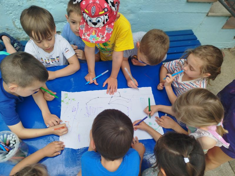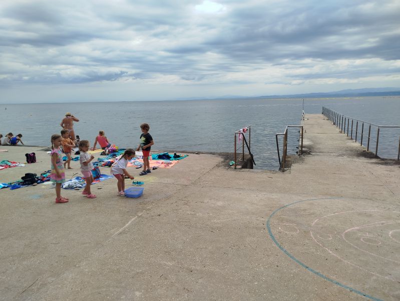 otroci se imajo v letovišču Pacug zelo lepo. Vreme je sončno in toplo.
